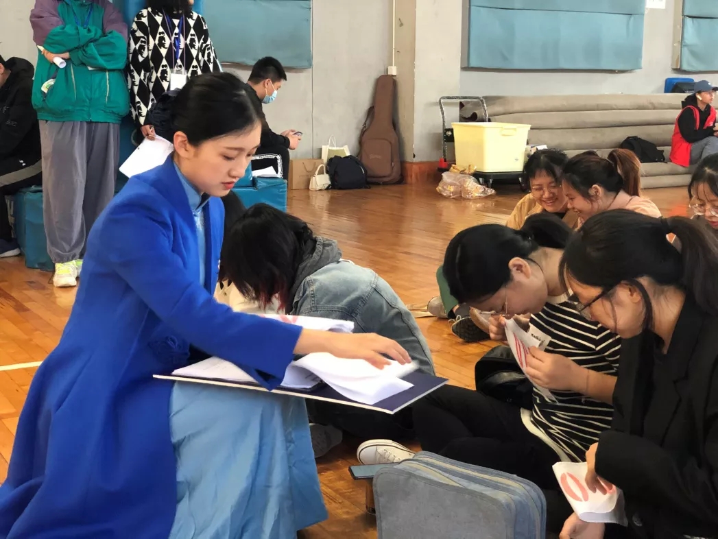 主任寿文华、副主任薛林峰已带领部门老师在忙碌中,播音主持艺术学院的老师们已将学生组织到位,动画与数字艺术学院党委书记贾智正在鼓励学生沉着应战。