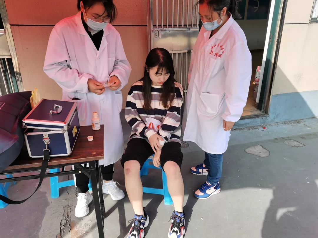 在长短跑项目测试中,有几位同学途中摔倒,但他们爬起来的第一句话都是:“我可以再跑一次吗?”经过医务人员的消炎处理后,他们又一次迈向起跑线。这就是勇敢、坚毅的浙传人!