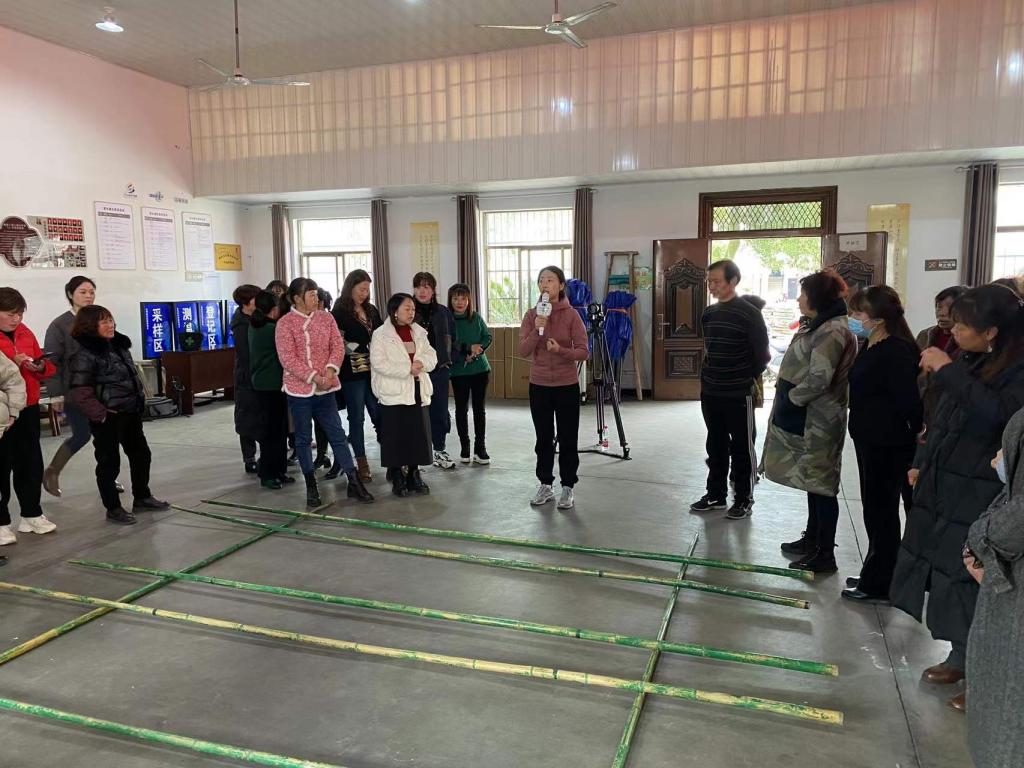 党员教师张晓瑛副教授与省非遗办专家徐金尧教授等为三十多位村民进行了音乐竹竿舞的培训。