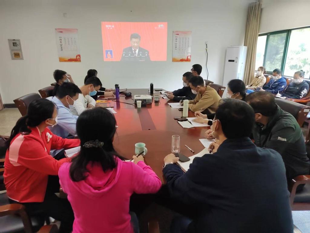 直属党支部全体党员在体育馆“党员之家”集中观看大会直播,聆听习近平总书记代表第十九届中央委员会所作报告。