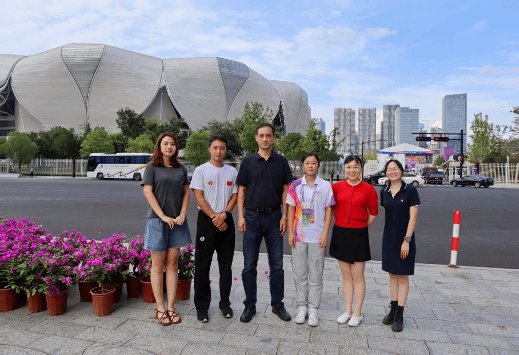 (下沙校区)体育场场馆指挥部、杭州奥体中心体育馆、杭州奥体博览城网球中心、杭州国际会议中心亲切慰问部门支援亚运工作的体育教师们。