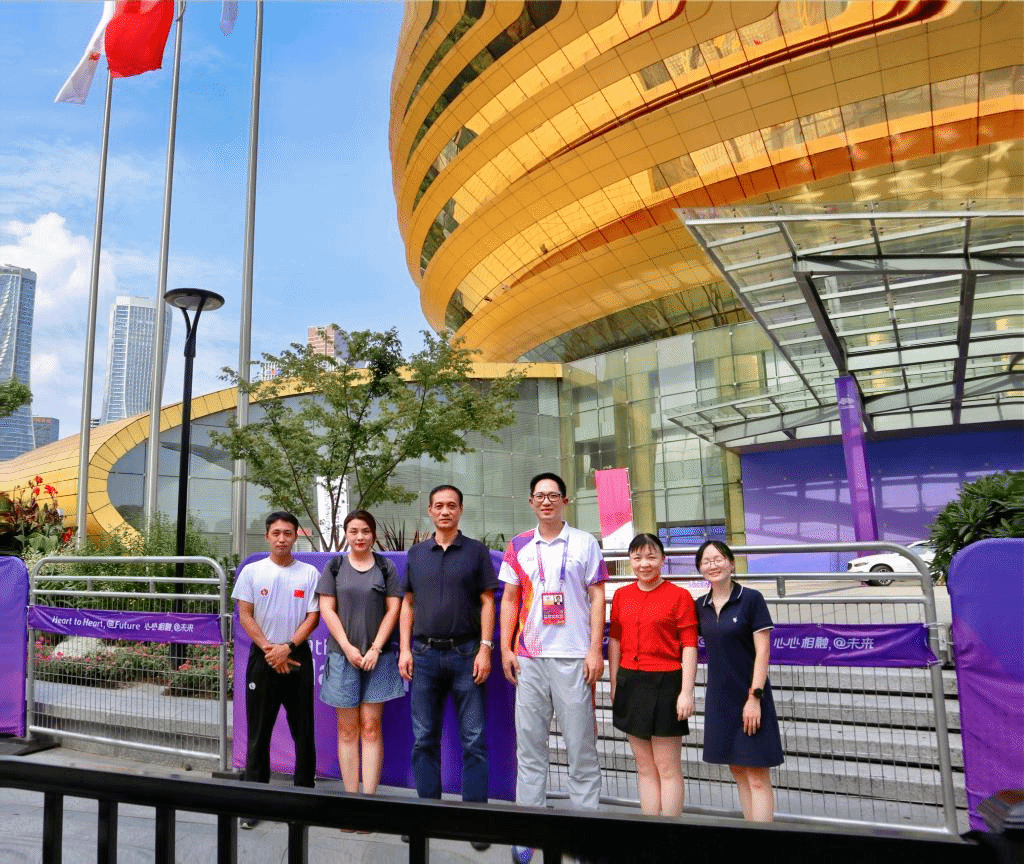 赴杭州奥体博览城网球中心探望担任内部事务工作人员的陶莹莹老师。