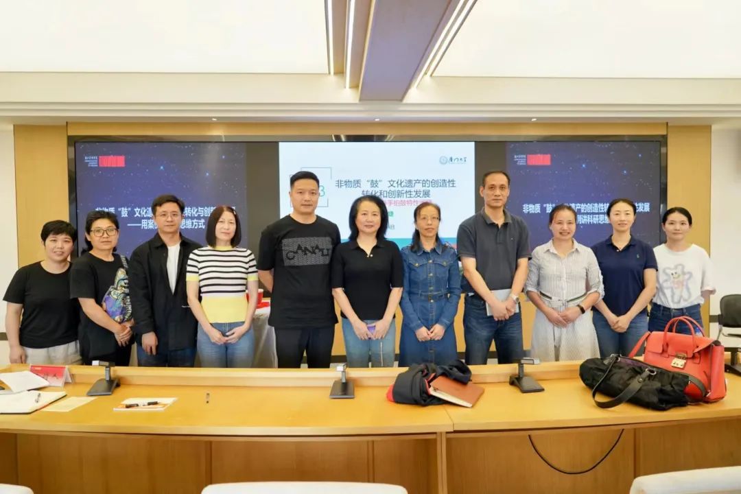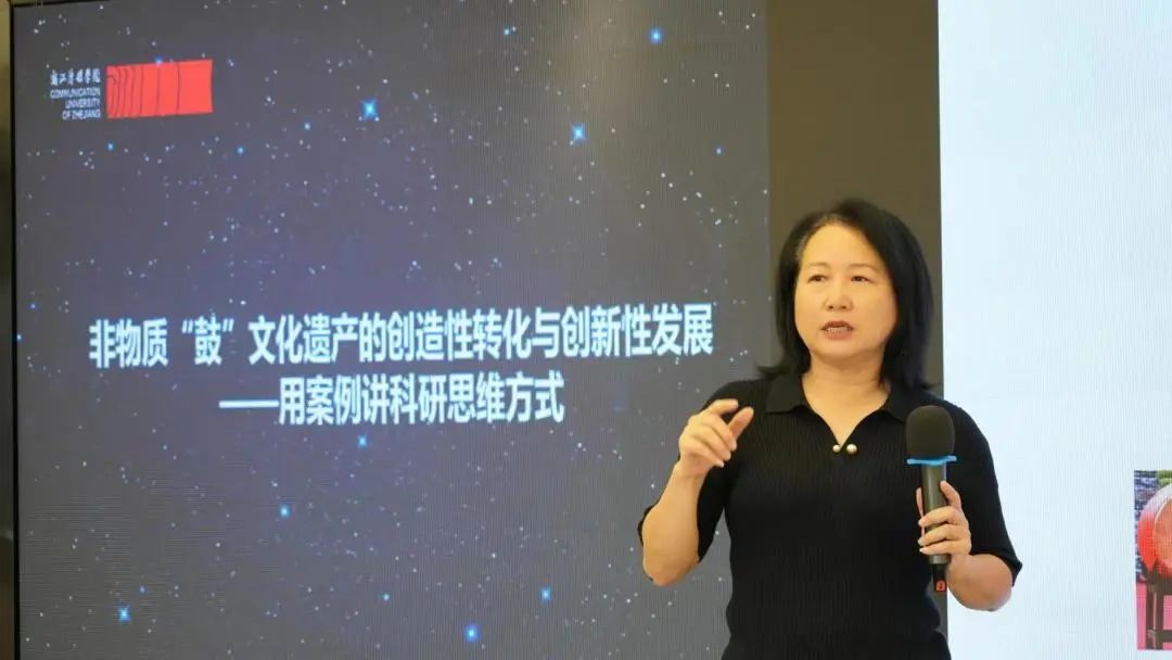 师生开展以“非物质‘鼓’文化遗产的创造性转化与创新性发展——用案例讲科研思维方式”为题的讲座,讲座由大学啪啪啦
