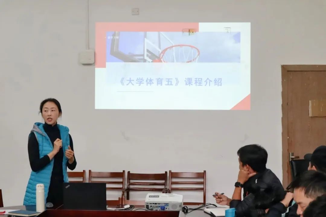 随后,部门工会妇联主席张晓瑛对本学期增设的《大学体育五》课程大纲进行详细介绍和教案展示。