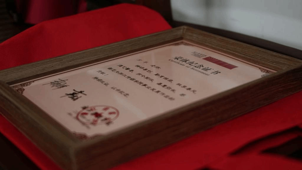 校工会陈瑞芳副主席代表校工会赠送了荣休证书、展盘等纪念品。