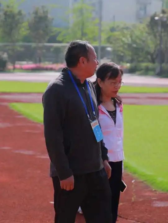 的老师们在测试前悉心指导学生,带领学生做好准备活动。