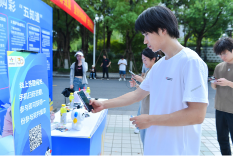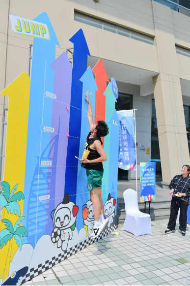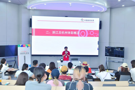 宣讲会上,张洁作为本届赛事的特邀嘉宾,围绕赛事主题,详细指导参赛,全面介绍浙江省体育产业发展情况,深入分析智能硬件、体育电商平台、户外装备和运动医疗等四个行业领域的创新创业新路径。沈国涛重点介绍赛事新增的“添‘彩’体育梦想”赛道,以及“体彩+N”的优秀创业案例。同时,组织方在体育馆前设置了户外体彩趣味体验区,学生们在全民健身区、公益区、公信区、幸运区等几大区域体验特色互动活动。活动现场,学生们积极参与线上打卡活动,通过拍摄短视频、体验式vlog视频的方式,分享对大学生创新创业的看法,为双创大赛预热。