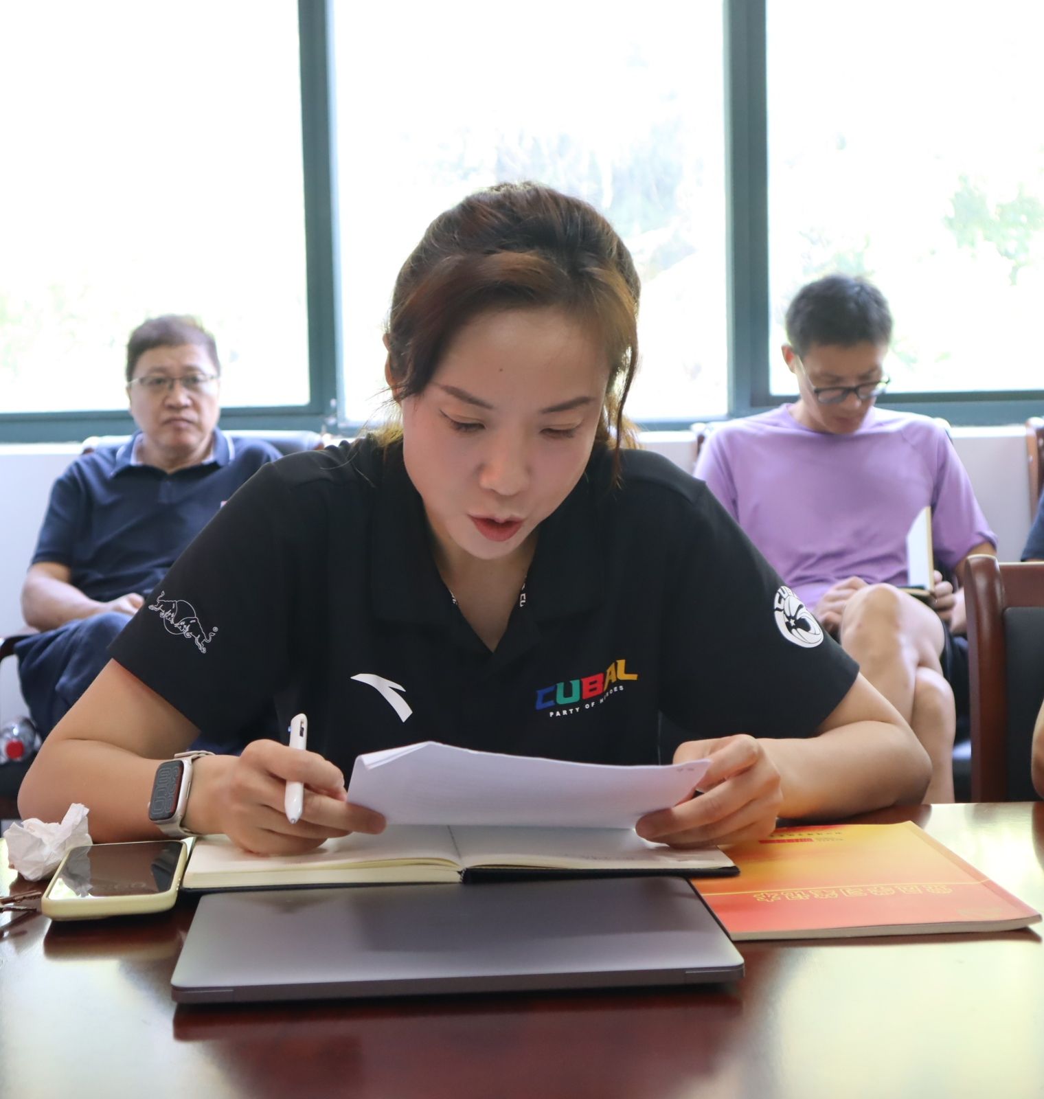 学术副主任周钰嫣传达学校暑期读书会精神深入解读了会议主题、校领导讲话精神和专家报告要点等。读书会围绕习近平总书记对学校提出的“紧跟时代、突出特色”重要办学指示精神,对标学校第四次党代会确立的目标,聚焦“高质量发展落实年”任务,要求全校以“六干”作风做好深化教育科技人才一体化改革发展,奋力打造“四高地一品牌”,加快推进高水平传媒大学建设,奋力谱写中国式现代化浙江新篇章。周钰嫣立足部门实际工作,分享三点学习体会:一是以“数智体育”应对时代挑战;二是以“奋进定位”锚定高质量发展;三是以“实干担当”迎接巡视大考。