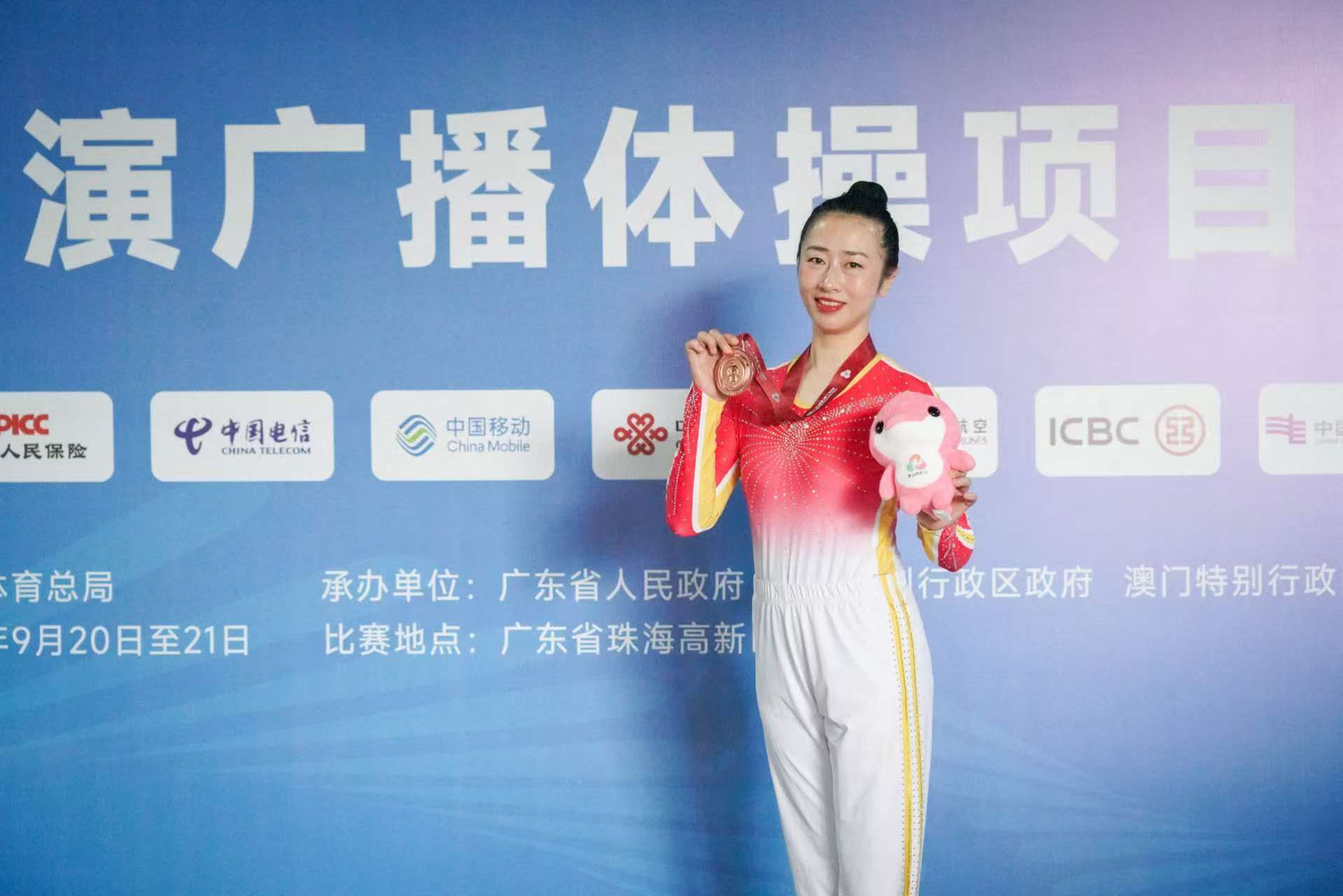 近日,在广东珠海举行的中华人民共和国第十五届运动会群众展演广播体操项目决赛中,啪啪啦