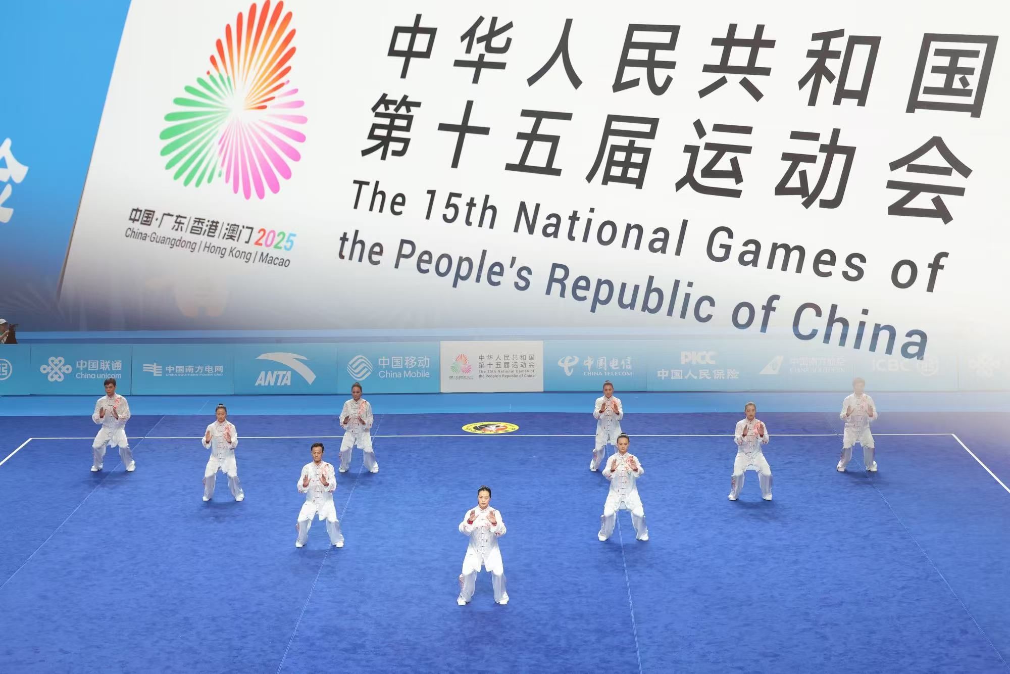 随后,在广州佛山举行的第十五届全运会群众展演太极拳项目决赛上,啪啪啦